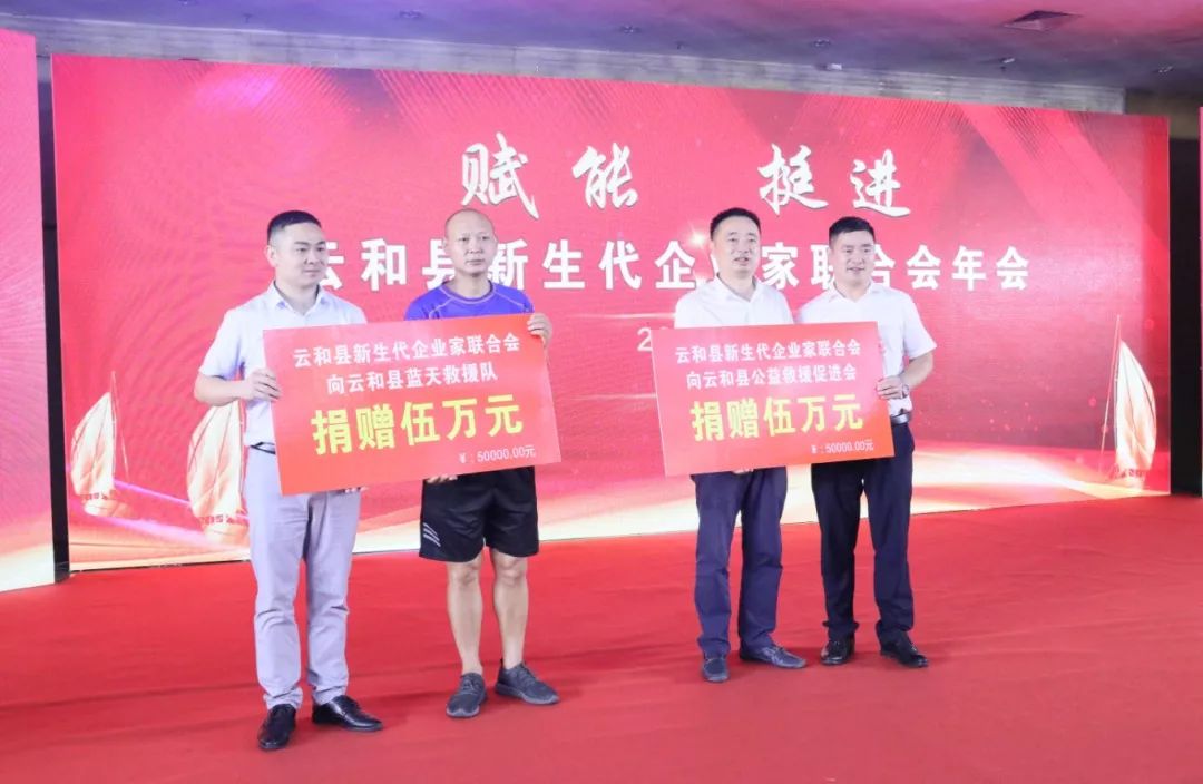 年会上,云和县新生代企业家联合会进一步发扬企业家精神,以每年一万元的方式,为云和县蓝天救援队和云和县公益救援促进会分别捐赠五万元