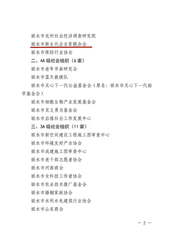 喜报||热烈祝贺丽水市新生代企业家联合会荣获“5A级社会组织”称号