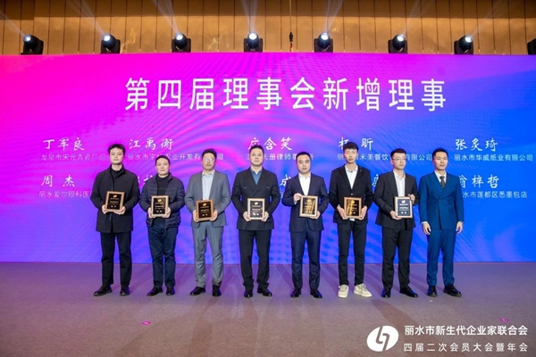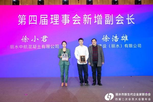 在四届二次理事会上,表决通过了增补徐小君、徐浩雄两位同志为理事会副会长,丽水市工商联副主席吕志充为两位副会长颁牌。