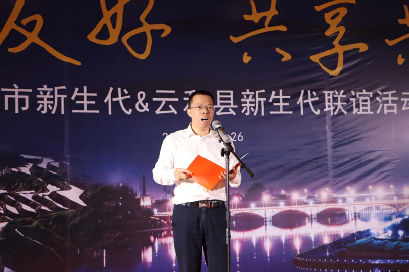 丽水市新生代企业家联合会邵烨会长致答谢辞,他说:“丽水与云和血脉相通,共饮瓯江水,有着千丝万缕的渊源和情谊,希望通过此次活动,能进一步促进两地间的合作与交流,增进两地间的沟通与感情,推动两会的各项工作跃上新台阶,开拓新局面。新征程开启新希望,新历程承载新梦想,让我们凝聚智慧、携手奋进、共创未来,踏着新时代的脚步,积极带领新生代企业家接好政治传承和事业传承之班;以党建为引领,不忘初心,牢记使命,努力弘扬践行“浙西南革命精神”。我坚信,有党和政府的关心支持,有大家的同心同行、无私奉献,我们的努力一定会在这片生机盎然的热土上开出更加绚丽灿烂的花朵!”