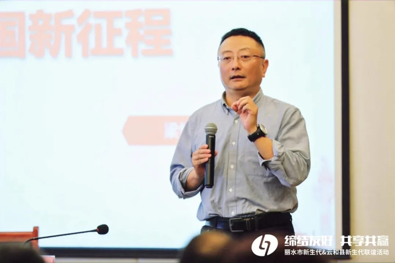 云和县委常委、统战部杨伟业部长代表云和县委和县委统战部致辞,他说:“青春蕴育着无限希望,新生代企业家年轻有为、才识超群、志向远大,是推动丽水、云和经济高质量发展的宝贵资源和生力军。在改革开放的伟大实践和时代大潮中,一批又一批青年企业家锐意进取、顽强拼搏,坚守实业、勇立潮头,主动履行社会责任,展现了新时代企业家创业创新、敢为人先的时代风采。希望新生代企业家们认真学习贯彻习近平总书记在企业家座谈会上的重要讲话精神和全国民营经济统战工作会议精神,深化理想信念教育,增进政治共识。希望大力弘扬企业家精神,在爱国、创新、诚信、社会责任和国际视野等方面不断提升自己。希望践行新发展理念,立足国内国际双循环的新格局,把握住时代机遇,拥护变化,提升产业链现代化水平,大力推进科技创新,在危机中育新机,于变局中开新局,开创事业的新天地。希望市、县新生代企业家联合会同心同德、密切合作,创造更多交往交流的载体和方式,携手前行,共享共赢,开创美好的未来。”