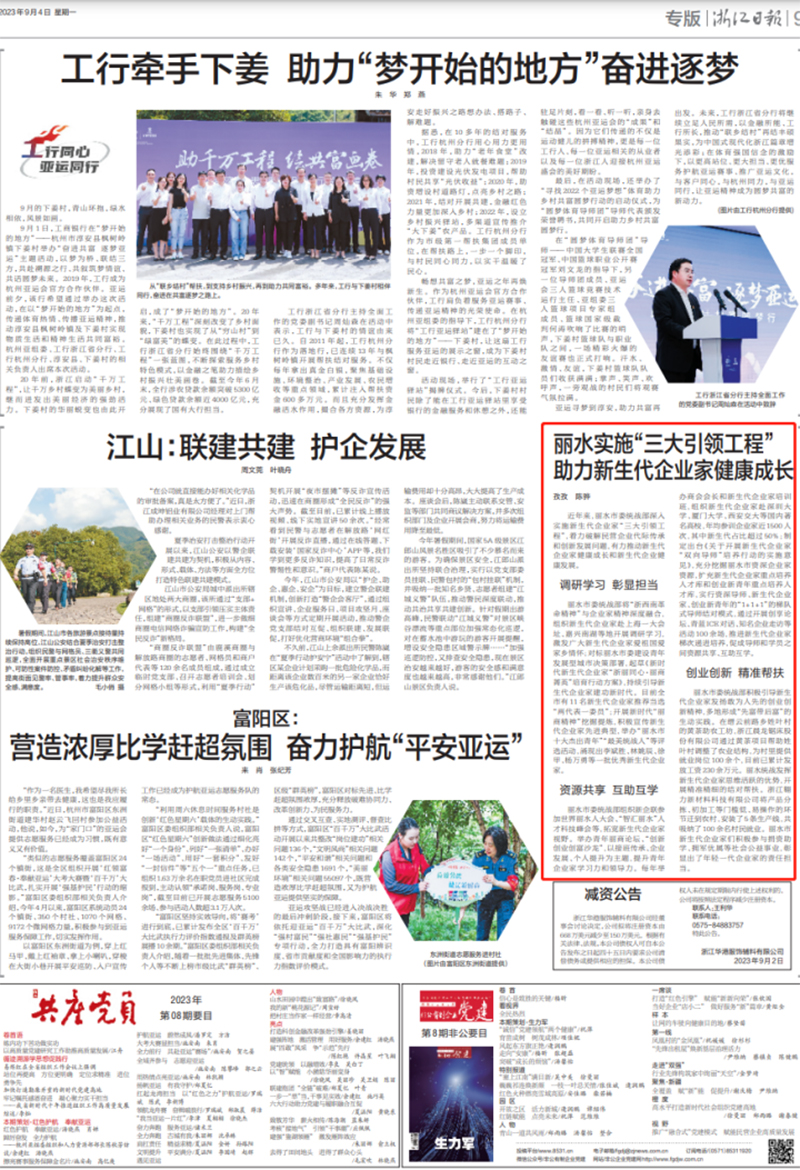 近年来,丽水市委统战部深入实施新生代企业家“三大引领工程”,着力破解民营企业代际传承和创新发展问题,有力推动新生代企业家健康成长和新生代企业健康发展。
