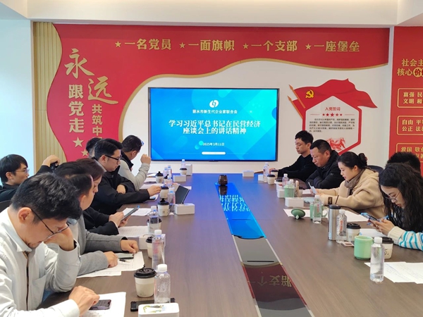会议期间,徐甲会长传达了闭幕不久的市“两会”精神,重点学习了朱林森市长《政府工作报告》并对其中涉及到民营经济政策支持、营商环境等部分作了深度解读,并鼓励企业家要按照“十四五”规划谋求发展、勇于创新、突破瓶颈,为丽水市经济社会发展贡献力量。同时指出,新生代企业家应继承优良传统,拥抱新时代,推动企业转型升级,共同打造独具特色的示范区。
