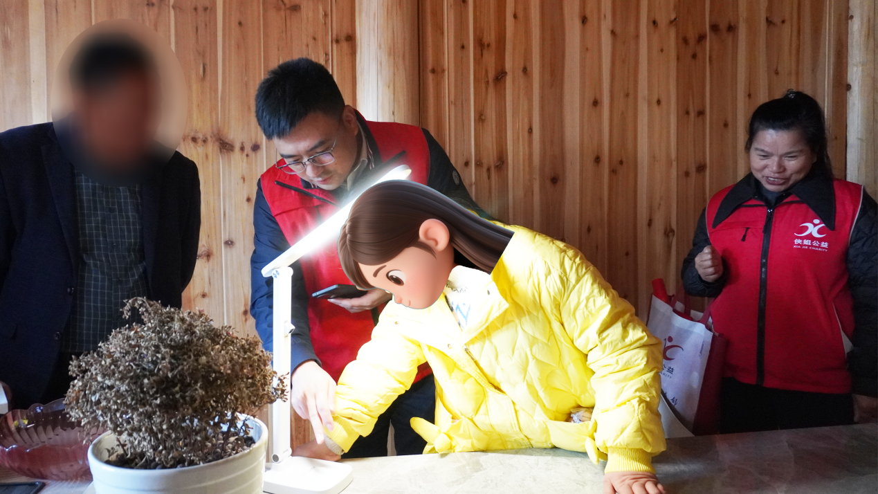 “这灯真亮堂!能写作业、和爸妈视频,还能听故事、问难题呢!“在老竹镇某村儿童小宇(化名)家,丽水移动工程师刚装好智能台灯、调通宽带,小宇便高兴地触摸灯座演示功能。因身体不便,他常借昏暗光线学习,姐姐没读过书,一直默默陪他翻书递笔。如今,这盏“会说话的灯”不仅照亮书本,更让父母能方便看护,姐姐也可在灯下陪读。接过丽水市新生代企业家联合会与台州商会志愿者送来的课外书,小宇的母亲眼眶泛红:“灯亮、能视频、有书读,比啥都强!”