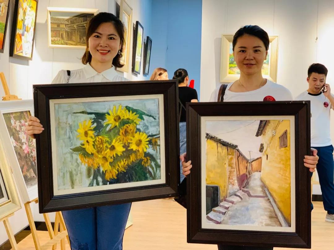 随后,在老师们的引导下,大家来到了美术作品展厅,挑选了自己喜爱的作品,你一幅我一幅,短短的时间展厅的作品被爱心使者认购的所剩无几。同时,还有近20位的爱心人士通过其他方式参与了认购行动。最后,现场认购的会员与创作者一一合影,会员们这种源自内心的善举,为学生们树立了榜样,得到了学校老师的赞扬。本次活动,会员们共认购45幅美术作品,学校方表示,义卖所得的公益基金将用于学生的美术作品创作。