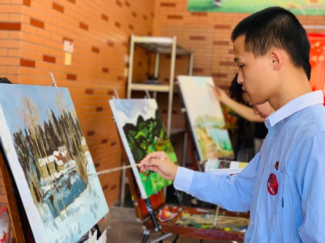 首先,杨素芬校长代表校方向大家介绍了学校的基本概况、学生学习生活情况、油画作品的创作风格等;接着,带领大家来到首次开放的校园美术展厅参观品鉴由听障学生创作的油画作品,同时欣赏了学生的现场创作,一幅幅展现绿谷大地风貌的优秀油画作品,栩栩如生,尽收眼底,大家对这批特殊学生创作的美术作品赞叹不已,由衷敬佩他们的才华。