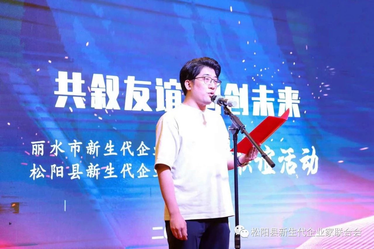 丽水市新生代企业家联合会邵烨会长致答谢辞,他说:“丽水与松阳血脉相通,有着千丝万缕的渊源和情谊,希望通过此次活动,能进一步促进“两会”间的合作与交流,增进“两会”间的沟通与感情,推动“两会”的各项工作跃上新台阶,开拓新局面。让我们凝聚智慧、携手奋进、共创未来,踏着新时代的脚步,努力弘扬践行“浙西南革命精神”,不忘初心,牢记使命,乘风破浪,扬帆前行!我坚信,有党和政府的关心支持,有大家的同心同行、无私奉献,我们的努力一定会在这片生机盎然的热土上开出更加绚丽灿烂的花朵!”