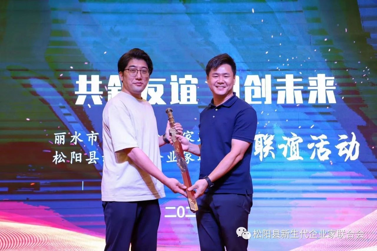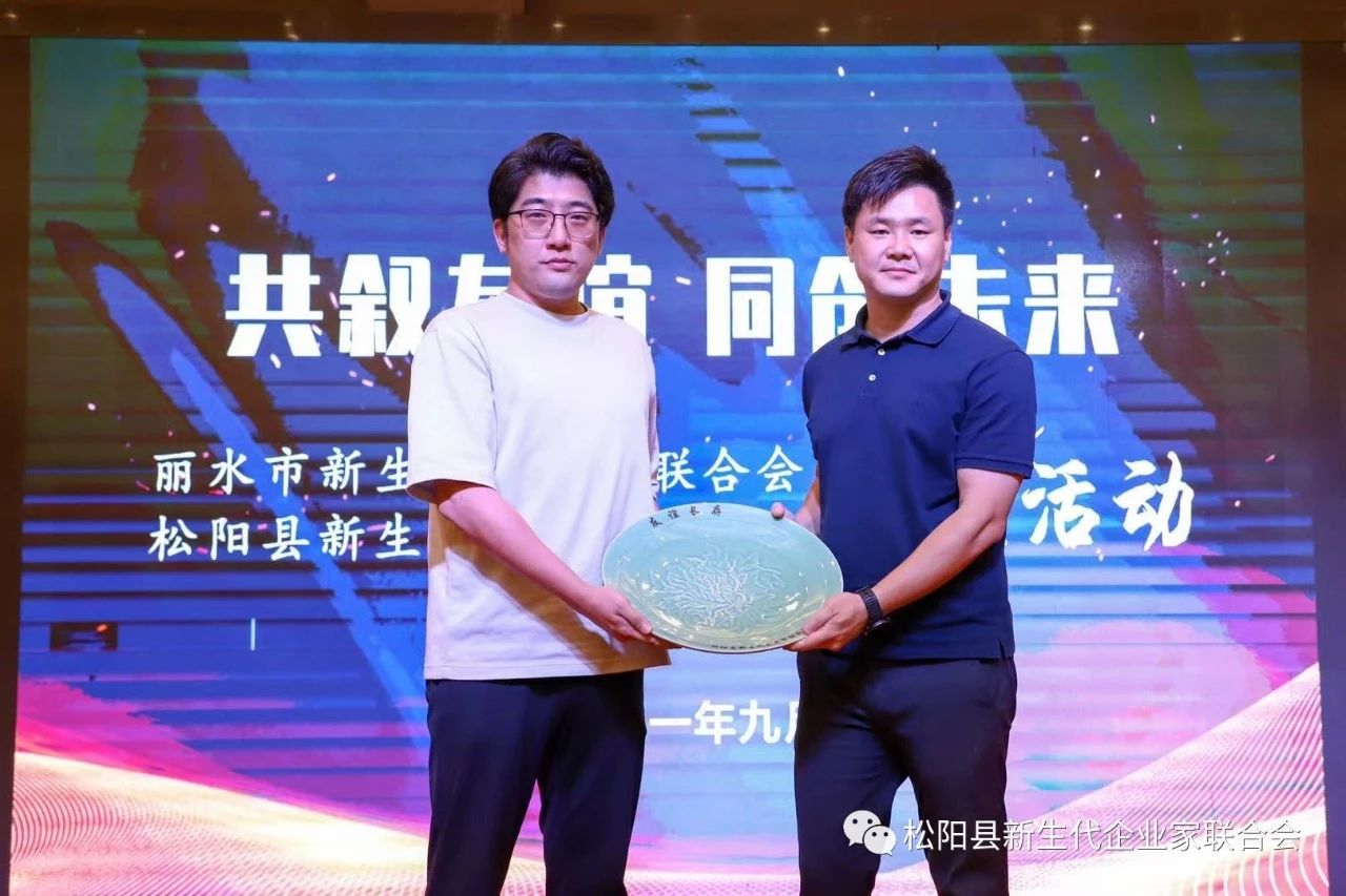 联谊活动上, 松阳县新生代企业家联合会宋泓震会长和丽水市新生代企业家联合会邵烨会长代表各自联合会进行了礼品交换。