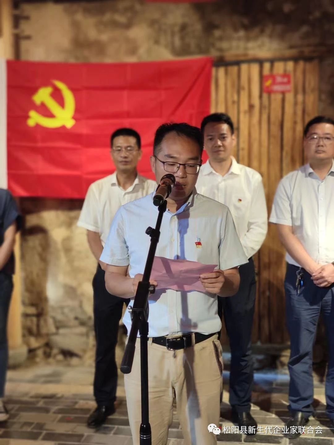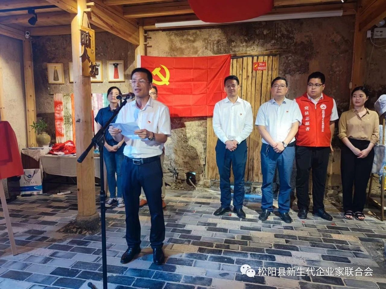 活动现场,全体党员重温入党誓词,并举行新生代企业家助农服务站揭牌仪式,仪式上松阳县四都乡党委书记蒋亚慰、松阳县新生代企业家联合会党支部书记阙陈俊、松阳县委宣传部常务副部长陈增伟分别致辞、发言、讲话;并由松阳县组织部副部长、两新工委书记蓝才旺为首批聘用的10名新生代企业家颁发聘书。