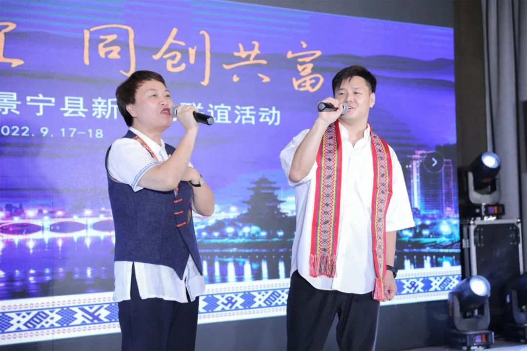 晚宴现场气氛活跃,精彩纷呈。两地的会员们纷纷登台献艺,邵会长和陈会长还一起为大家带来精彩的合唱……精彩的节目充分展现了两地青年企业家们逢勃向上、活力四射的精神风貌。活动中还举行了丽水与景宁新生代联合会互赠礼物环节,景宁县新生代会长陈晓丽和庆元县新生代会长季加贵还进行了“新生代市县两级轮值单位”旗帜交接仪式,为此次联谊活动画上了一个圆满的句号。