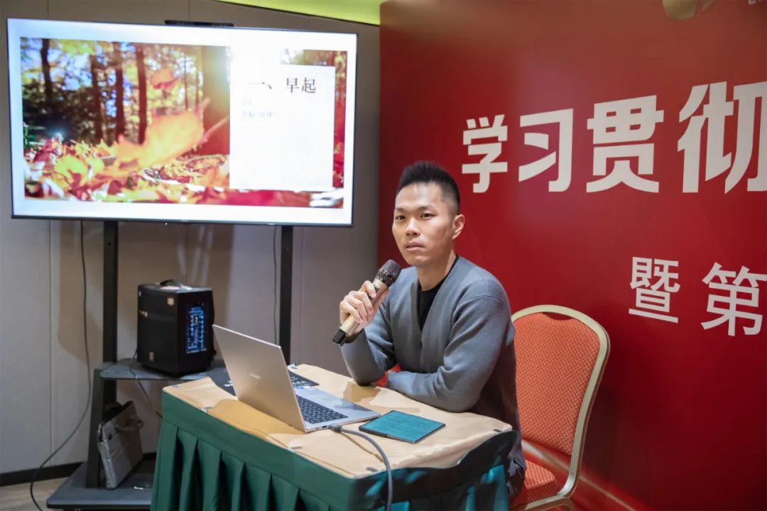 分享会上,徐甲常务副会长从养生的角度和大家分享了早晨起床后的习惯养成问题,从不同的维度阐述了作为企业家不仅要有健康的身体,更要不断地学习才能为企业做出更多更好的服务。