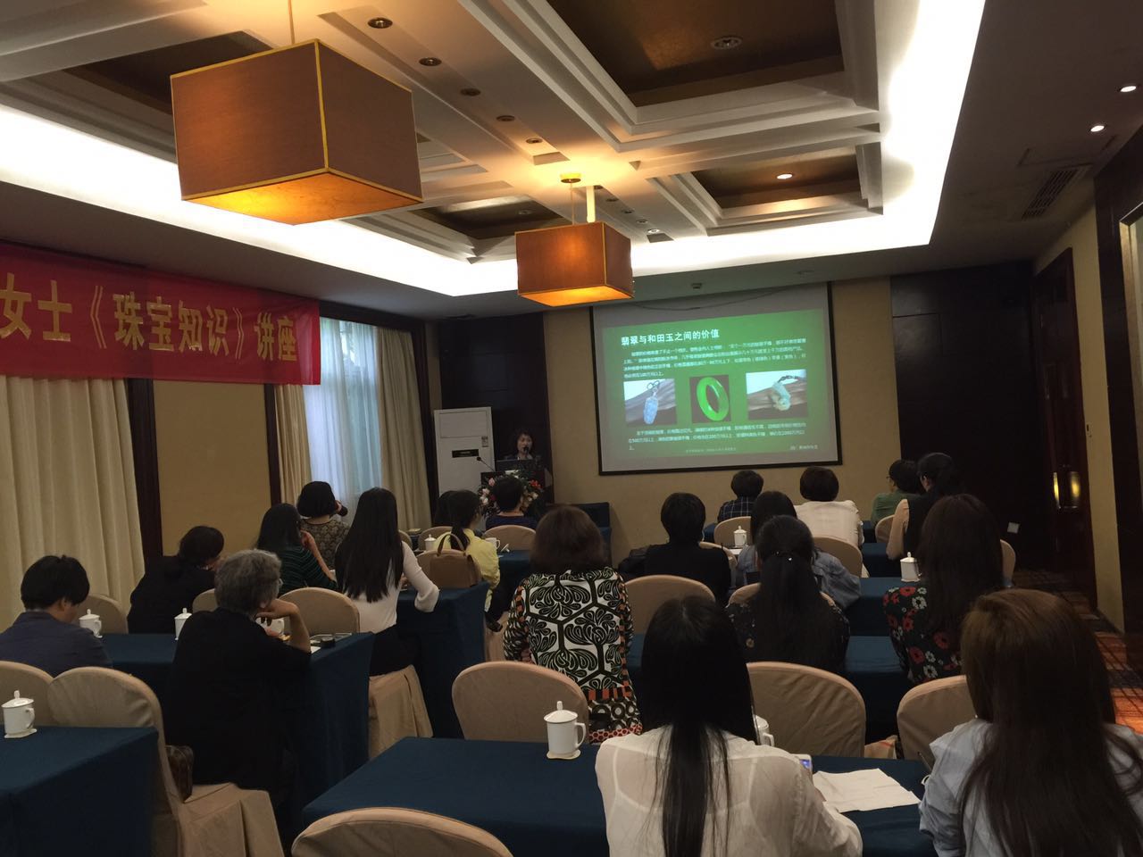 讲座分珠宝基本知识讲解和现场互动两个环节进行,讲解内容包括:彩宝介绍、翡翠形成的条件及分布、翡翠的由来、翡翠与和田玉之间的价值、翡翠的水种及分类、翡翠常见的意寓等六大部分,随后大家对珠宝的真假进行鉴别体验,现场互动非常热烈、解答非常积极、兴趣非常浓厚。朱俐女士的讲座深入浅出、精彩生动、通俗易懂,大家纷纷表示通过半天的学习,对珠宝知识的了解有了很大的帮助,收益颇多。
