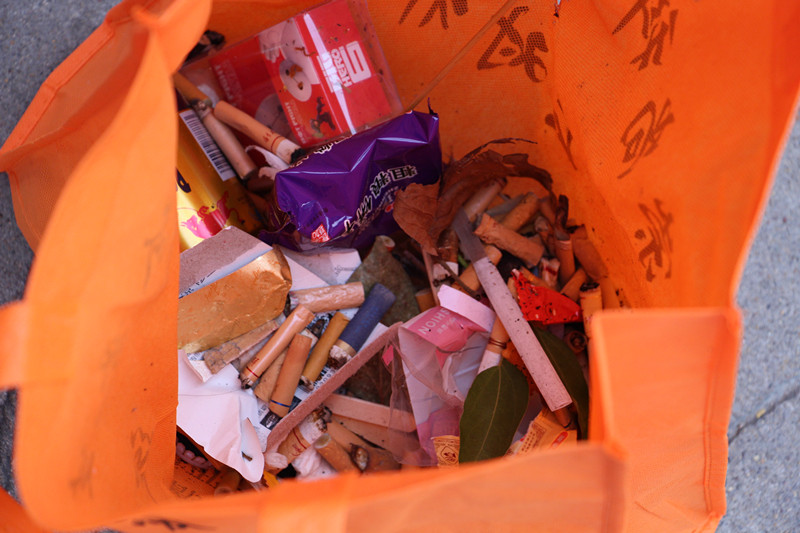 随后,这些新生代企业家们手提工具,头顶烈日,来到了市区中山街,沿街捡拾烟头多达一千多个。